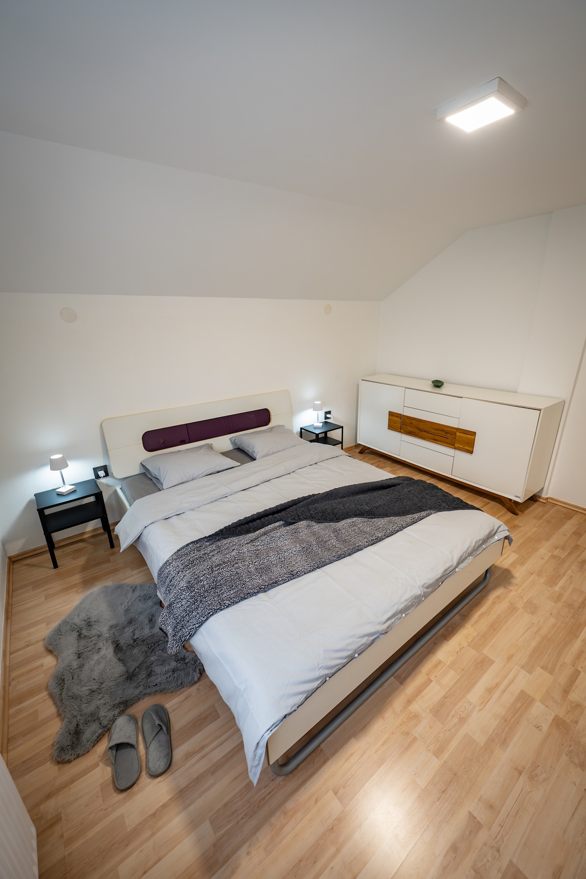 This spacious, immaculate and cozy apartment will be your oasis in the very heart of the city. Unbeatable quiet location with walking distance to the Triple & Dragon Bridge and the Central Market. Surrounded by many amazing restaurants, cafes, bbq & bars. Only a few minutes from the main train & bus station. Comfortable queen (160cm) bed and attached bathroom with a shower. A fully equipped kitchen with a refrigerator. Linens, towels, toiletries and a washing machine provide. Free garage