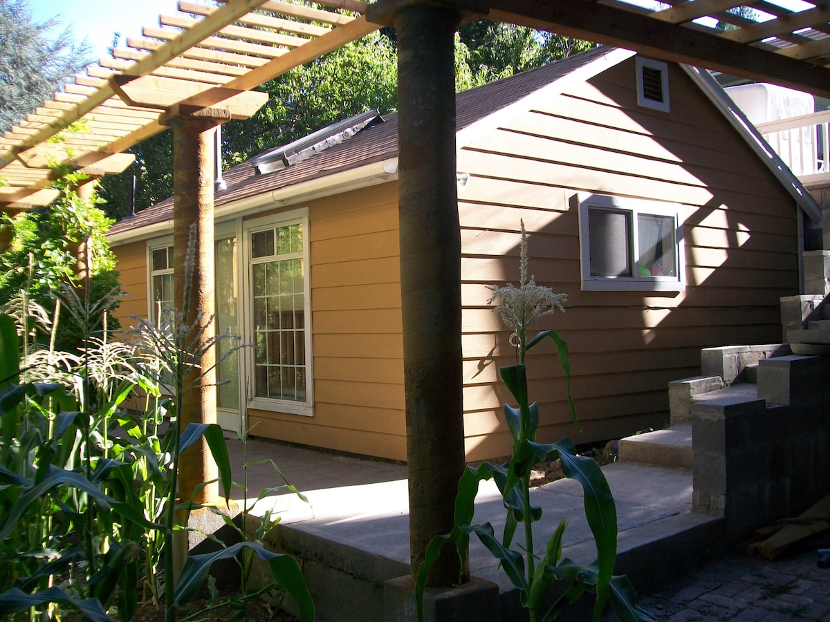 位于Mt.的舒适单间公寓。沙斯塔;安静,花园环境。