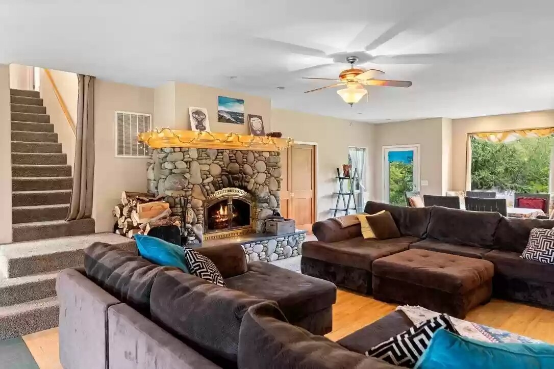 PLEASE NOTE: Full remodel completed July 2026 – photos are pre-remodel. Enjoy stunning Mt. Shasta views at this elegant 5-acre, 6+ bed, 3.5 bath retreat. The 4,000 sq ft home features a gourmet kitchen, spacious great room, dining area, bedroom, and 1.5 baths on the main level. Upstairs offers 2 master suites with balconies and views, a shared bath with heart-shaped tub, bunk room, 2 additional bedrooms, bath, and laundry. Event space and loft above garage available for special use