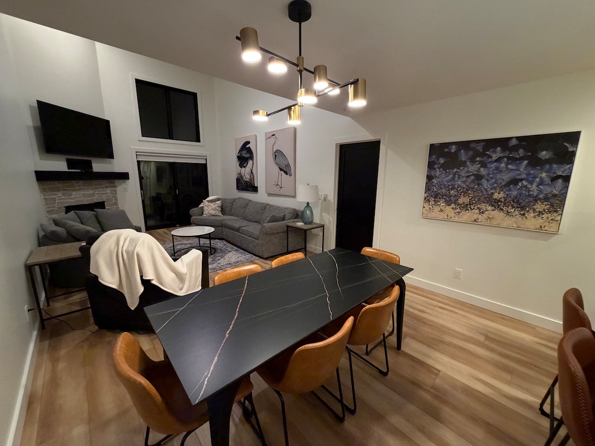 Scandia by Getaway and Stay Enjoy a family-friendly winter getaway in Sister Bay, just 5 minutes from the marina. The spacious backyard welcomes kids and dogs with a 5-seat hot tub, firepit, and grill for cozy evenings under the stars. Inside, two sunlit living rooms and open spaces make it easy to play, relax, and connect. Whether exploring Door County’s winter adventures or staying in, this retreat is perfect for creating lasting family memories.