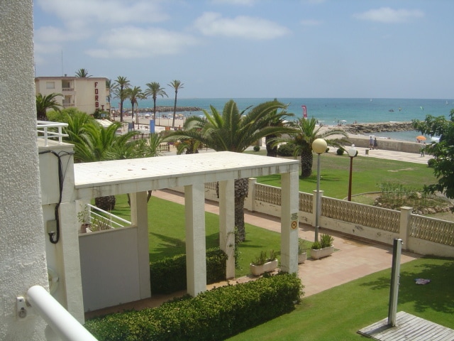 HUTB LEGAL - Apartamento en Sitges con increíbles vistas al mar, a 10 mts. de la playa. Salón-comedor, 2 hab. dobles, 1 baño completo con bañera y bidet. Cocina totalmente equipada. TV. 30 m2 de jardín priv. delante del mar. Patio de 15 m2 con plantas, que da luminosidad y vida. Piscina y a/ac. La habitación secundaria dispone de dos camas individuales. Puede ponerse bajo la otra, liberando espacio en la habitación. Cuna para bebé si es necesaria y tb mesa de trabajo y silla si imprescindible.