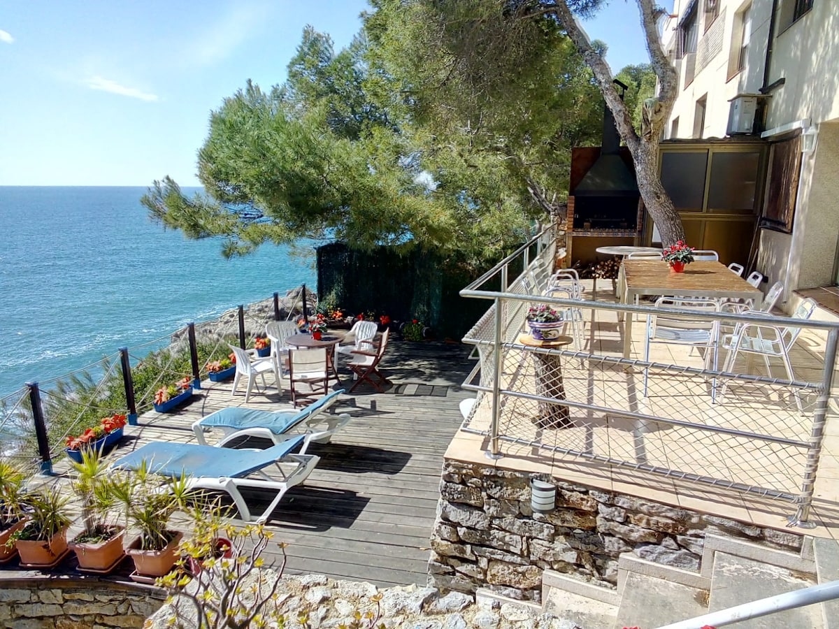 . Frente al mar . Perfectamente equipada y con calefacción para el invierno · Ideal para desconectar y descansar · Ubicada en el paseo marítimo · A solo 12 pasos de la arena · Cálida, acogedora y confortable · Estilo moderno con toques mediterráneos · Muy luminosa y bien ventilada · 2 habitaciones dobles con vistas al mar · 2 habitaciones individuales acogedoras · Para amantes del mar, la playa y la calma · A solo 50 min en tren desde Barcelona · Estación a 5 minutos a pie