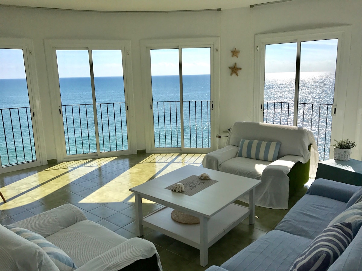 The Mediterraneo Sea apartment is located on the beachfront of Sitges, in the exclusive Mediterranean apartment complex. The apartment is composed of a double room with full wardrobes and full bathroom, a living room that has 2 sofa beds and a complete kitchen. It also has a large terrace with dining table, and a magnificent Chill-Out to have a drink and enjoy the views.