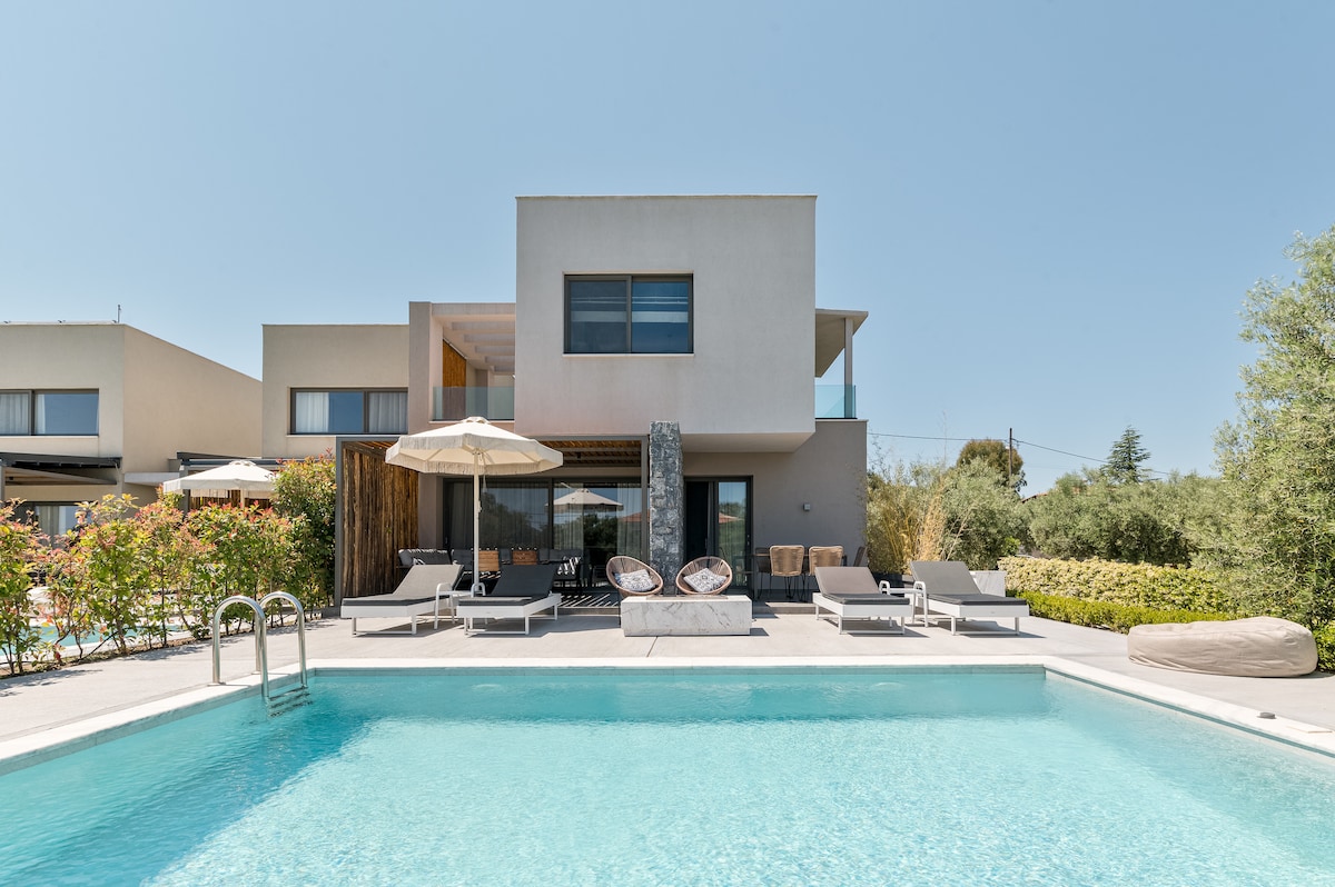 Welcome to ArtHill eco villas, a complex of self catering villas set on the hillside of Nikiti. Each handcrafted villa comes with its own private pool and uninterrupted views of the Aegean Sea. Each eco villa spans two levels and has two bedrooms, two bathrooms and an open plan, fully equipped kitchen living area which spills out onto the terrace. The villas are light, airy and spacious, designed to let the outside in.