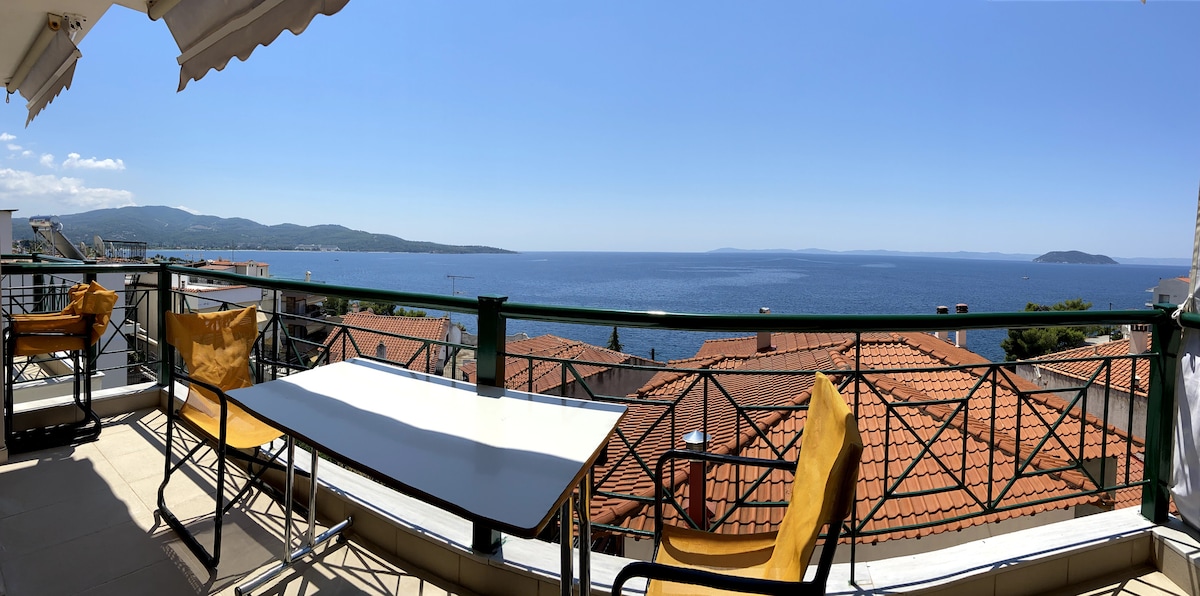 Ένα καινούργιο και ευρύχωρο κατάλυμα με μοναδική θέα στη θάλασσα που αγγίζει τις 180 μοίρες. Φωτεινό, διαμπερές, ήσυχο, με φιλόξενους οικοδεσπότες που θέτουν προτεραιότητα την άνετη και ευχάριστη διαμονή σας. Βρίσκεται μόλις 3 λεπτά με τα πόδια από την παραλία, όπου μπορείτε να απολαύσετε το μπάνιο σας στα γαλαζοπράσινα και πεντακάθαρα νερά. Επίσης, απέχει 5 λεπτά από το κέντρο του Νέου Μαρμαρά, που προσφέρει καλό φαγητό, διασκέδαση και βόλτες δίπλα στη θάλασσα. Στα 100m διατίθεται minimarket.