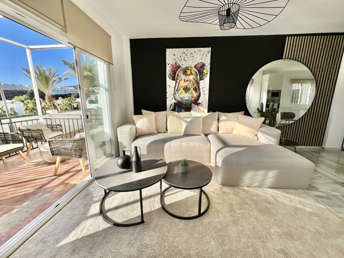 Brand new designer remodel 7 minutes walk to the beach and boardwalk in Riviera del Sol. Fantastic location; 5 minutes to La Cala de Mijas and 5 minutes to Cabopino. Gorgeous views of the Mediterranean from the living room and main bedroom. Huge sparkling pool with separate kid’s area. Gorgeous fully equipped kitchen with high end appliances. Stylish and comfortable furnishings throughout. Beach chairs, beach towels, and a cooler are provided to enhance your perfect day in the sand and water.