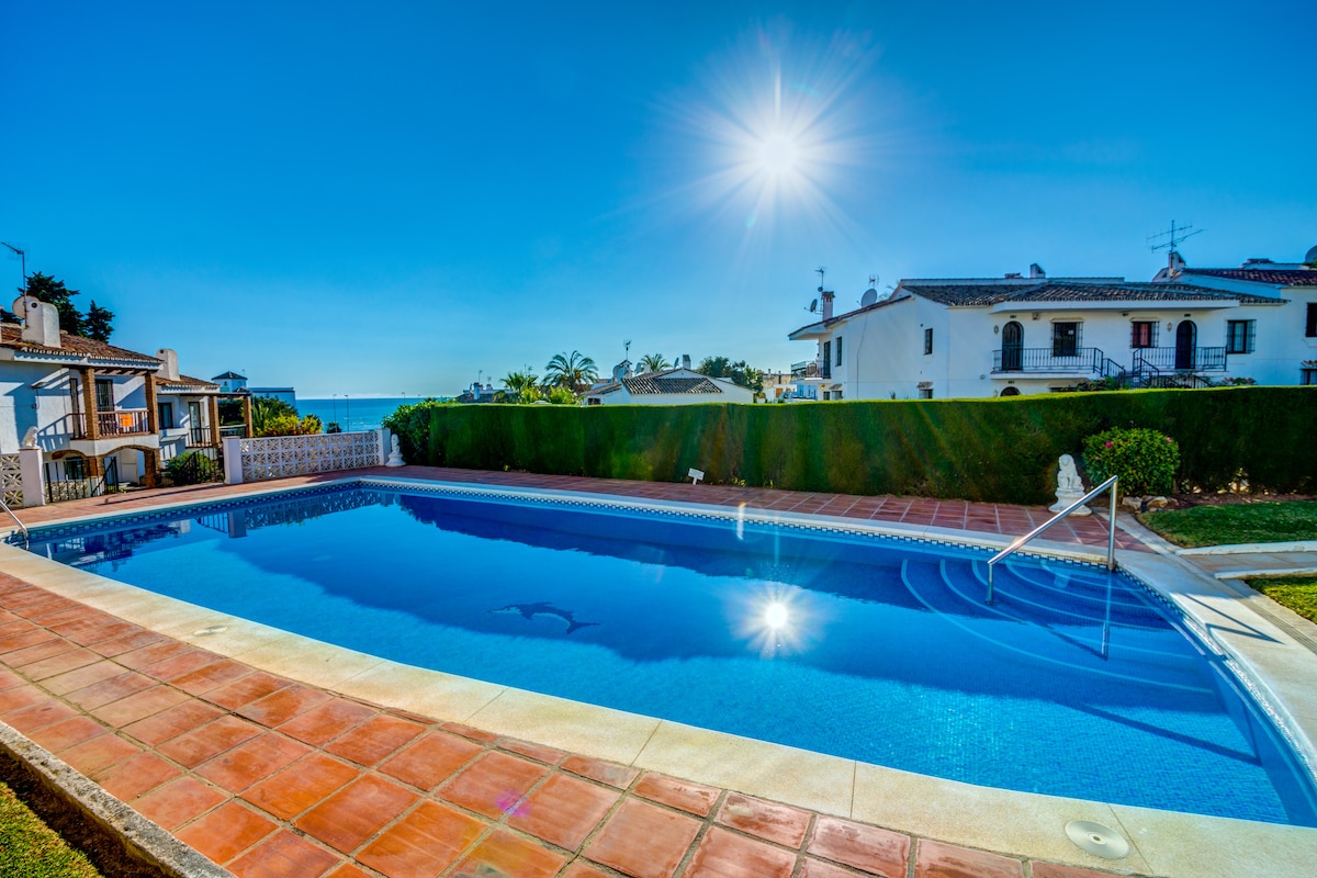 Get ready to feel at home on your holiday in this beachfront, first line, 2-bedroom all new fully renovated duplex! This air-con property has a south-facing balcony overlooking stunning views of the sea (and same views from the Master Bedroom), large swimming pool & lush gardens. Parking is available/included. No car? No problem. You are within walking distance of great restaurants, bars, banks, supermarkets, shops & a bus service (every 15 min) that goes to Fuengirola, Marbella & Puerto Banus.