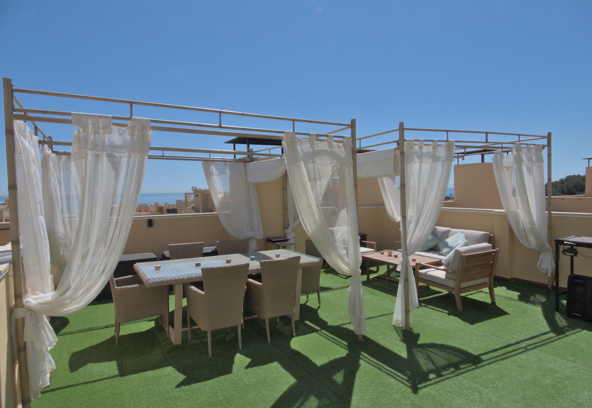 Penthouselejligheden lader dig få det bedste ud af de lyse morgener, gyldne eftermiddage og de glitrende udsigter i tusmørket. Velkommen til Paradis med hele 300 solskinsdage om året Penthouselejlighed har beliggenhed i hjertet af Costa Del Sol. Kan huse op til 6 personer. Penthouselejligheden byder på intet mindre end 200 m2 idyllisk udendørs terrasseområde. Terrassen er spækket med alt hvad du har brug for - napoleon Gril, jacuzzi, solstole og lounge områder