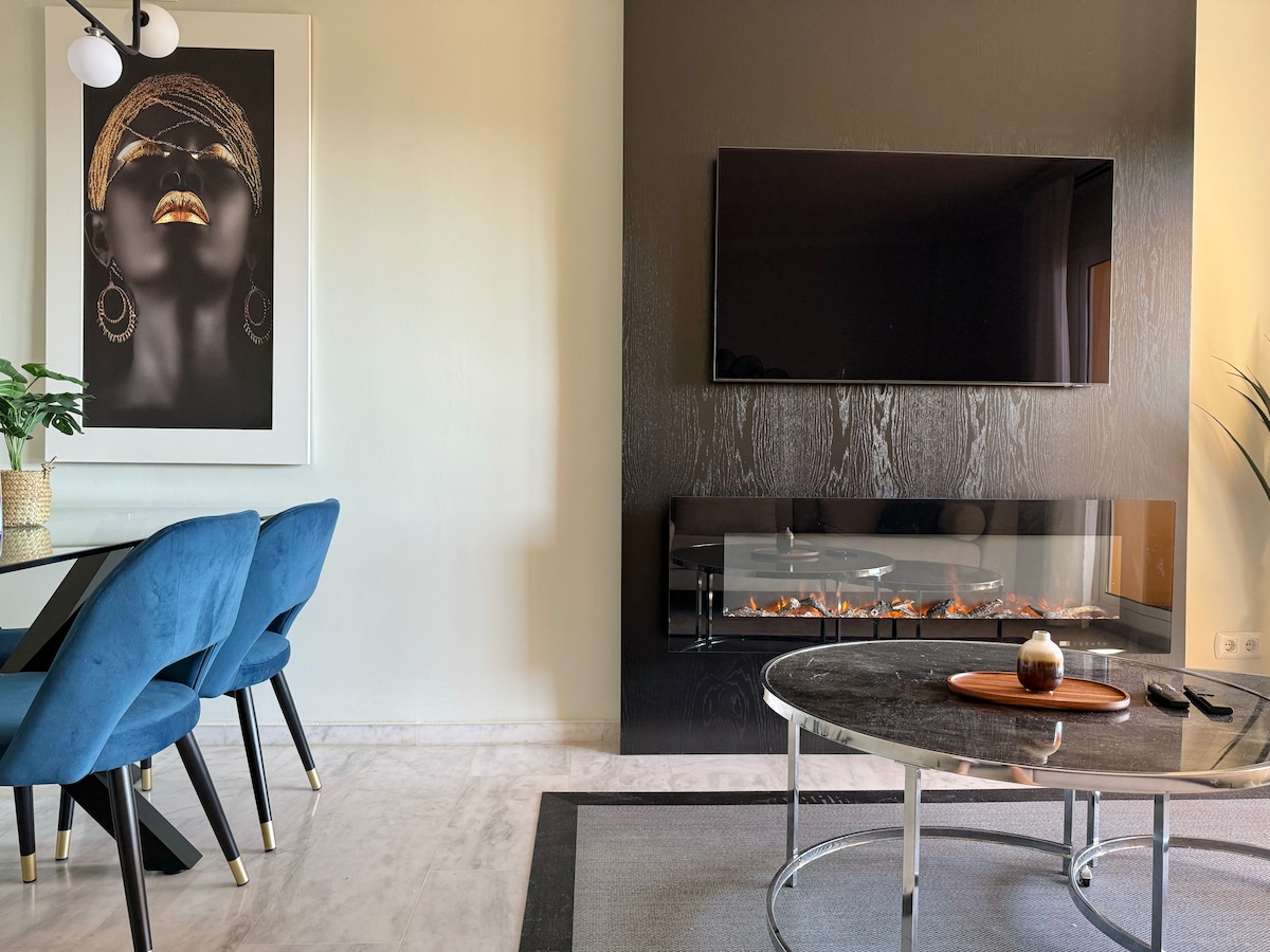Our newest & luxurious apartment in Calahonda (Marbella). ✓ Fully renovated ✓ Suitable for 4 persons (134m2) ✓ 2 large bedrooms (1 with sea views) ✓ 2,5 bathrooms ✓ Fully equipped kitchen ✓ Modern living room with HD TV, Netflix and sound docking station ✓ Air conditioning/ heating ✓ WiFi ✓ Amazing balcony with dining and lounge set, a BBQ and two sun loungers ✓ Community with 3 pools with sun loungers ✓ Free parking in the underground garage ✓ A safe