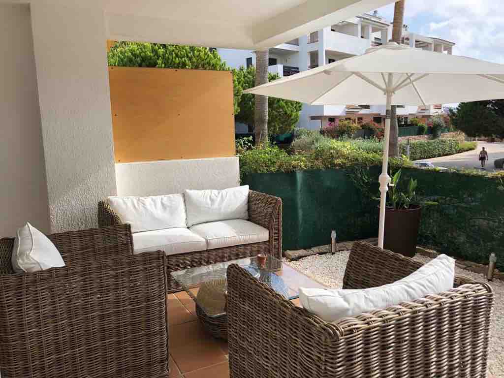 Bonito piso de un dormitorio de 40m2 & una terraza de 60m2, con vista al mar y sol todo el día. Mira al oeste. Esta en una planta baja. Es lo ideal para una pareja. Es muy cosy. El edificio tiene 60 pisos. La piscina es de temporada y acogedora. Mi piso esta a un par de minutos andando del paseó marítimo & de la playa Santa Ana & el parque & las paradas de autobúses. Mi cocina esta completamente equipada. Hay 2 Aire co & todos los electrodomésticos son nuevos . Tengo WiFi 500 MB