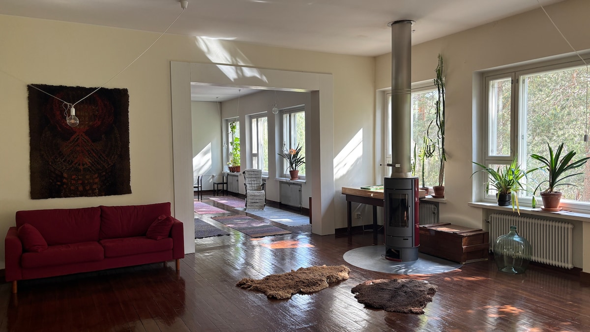 Our pet friendly guest apartment is located close to the beautiful Nuuksio National Park. Distance is 30 about km from from Helsinki center. The apartment consists of a bedroom , shower room and kitchen.. Nuuksio National Park is an area with over 100 lakes and ponds and a preferred get away for stressed city people and tourists. The house is in-midst a beautiful large garden, on the boarder of a small river and easy to reach by to public transportation.