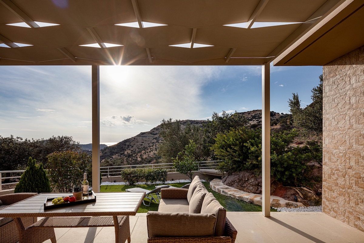 Villa Diamond was built in 2020. We have selected modern furniture and amenities that will make you feel like home with luxury. We have also a pool heating system for the colder months. An extra charge will apply. Fast WIFI ideal for a home office . The view is breath-taking, overlooking the ocean & the mountain ranges of Psiloritis. It is a 2-minute walk to the village where you'll find a bakery, restaurants, cafes, tavernas & a mini market that supplies everything.