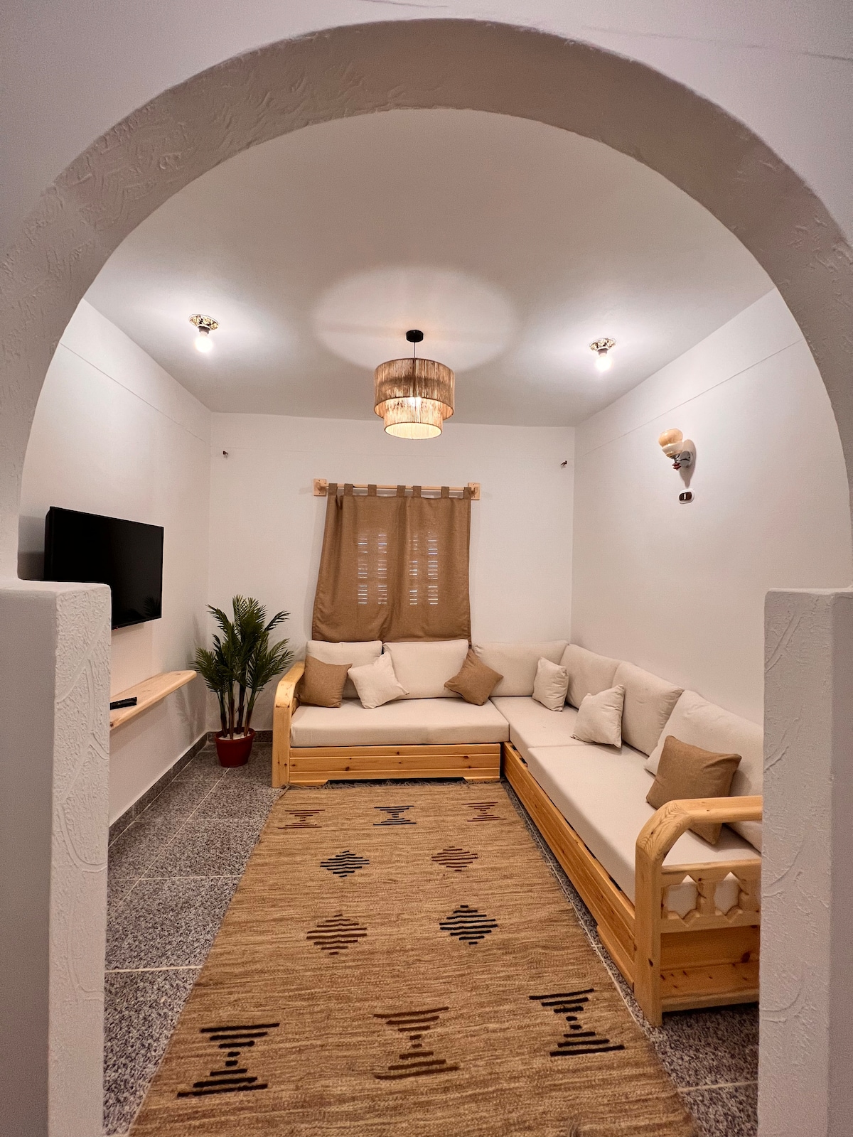 Step into a warm, wooden cozy apartment designed for comfort and relaxation. Surrounded by natural materials and soft lighting, this space offers a peaceful retreat after a day exploring Siwa. The apartment features a comfortable bed, a sitting area, and thoughtfully selected décor that blends nature with simplicity. Ideal for couples or solo travelers seeking calm, privacy, and authentic oasis vibes.