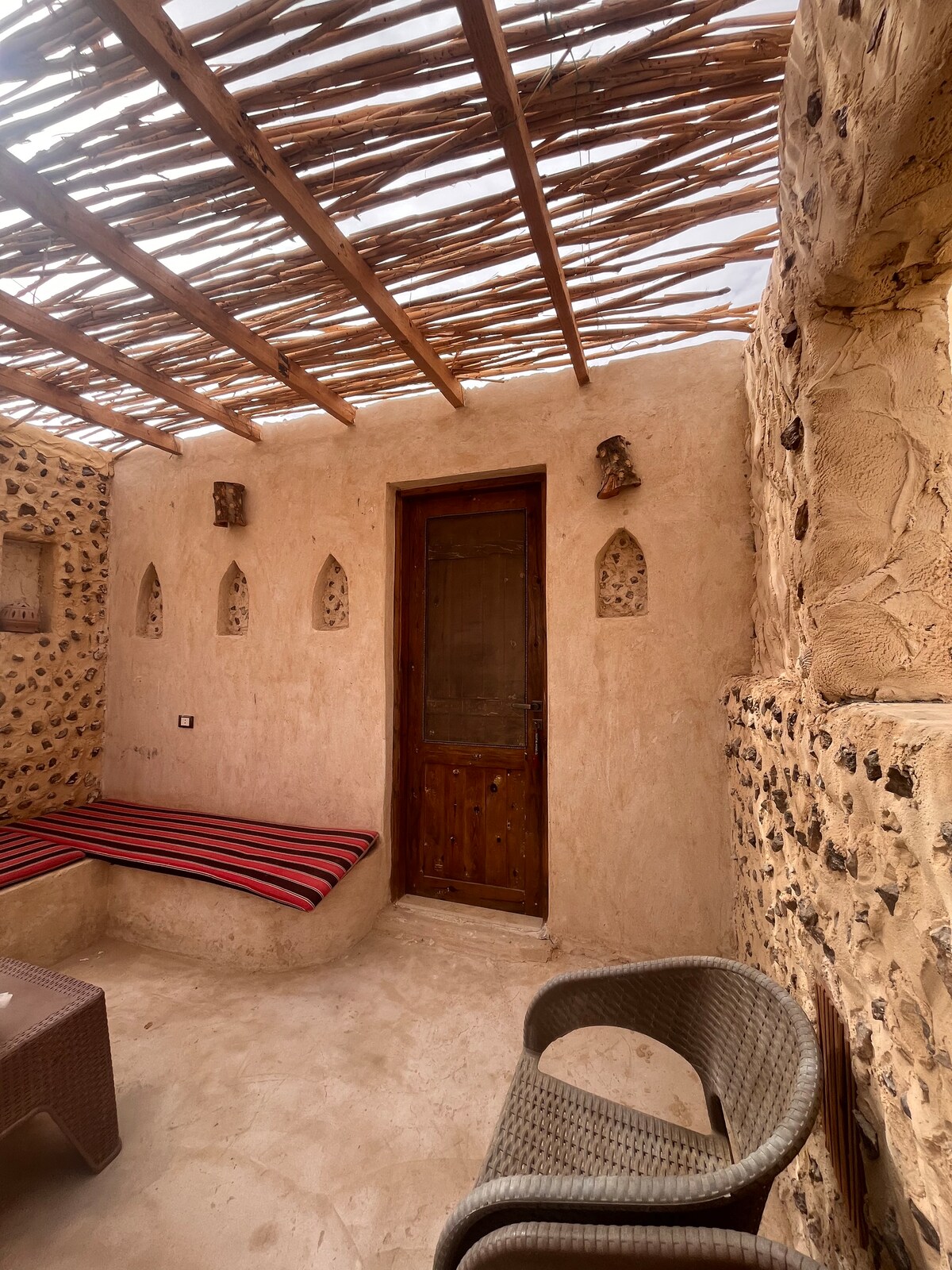 Hidden away in the peaceful streets of ancient Shali, Tut Neday House is a traditional Siwi mud and salt home - uniquely updated and styled by its English owners, Camilla and Daniel. Its enormous thick walls and ancient architecture keep it nice and snug during the cold desert nights in winter and cool and airy in the heat of the summer days. Simple and rustic - comfortable and homely.