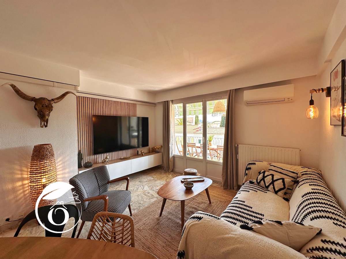 SANARY - Superbe Appartement 70m2 (T 2), rénové, petite résidence 5mn à pied du centre, des commerces et restaurants. Grand garage fermé. Prise véhicule électrique Tesla offert. CLIMATISATION Juin 2025. 3ème et dernier étage , face à la mer, vue imprenable sur le port de Sanary. Prestations de qualité. Chambre lit double 160. Grand séjour, salle à manger, salon, lit adulte banquette (2x90 cm). Vue mer pour toutes les pièces. Grand balcon mobilier extérieur. Salle de bain spacieuse. WC séparé.