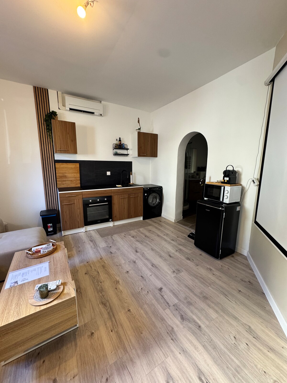 Studio climatisé, calme, tout confort, dans maison de village, rue piétonne à 150 m du port. 18 m² plus mezzanine et petit balcon composé comme suit : Une pièce principale : un canapé clic-clac, TV led, la fibre Free,une table et 4 chaises Une cuisine américaine : Lave-linge, lave-vaisselle ,réfrigérateur - congélateur, micro-ondes, mini-four, plaques électriques,cafetière, bouilloire Salle d’eau : Un lavabo, une douche, sèche cheveux. Un coin nuit en mezzanine : Un matelas bultex en 140.