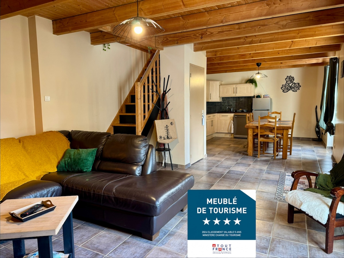 🌿 Maison atypique 5 chambres – 10 pers – Terrasse & nature Découvrez cette maison contemporaine et atypique conçue en conteneurs, idéale pour un séjour en famille ou entre amis jusqu’à 10 personnes. Avec ses 5 chambres équipées de lits king size (180 cm), salle de bain privative et TV, son grand espace de vie lumineux avec poêle à bois, et sa terrasse aménagée avec barbecue et brasero, elle offre un cadre moderne, verdoyant et apaisant.
