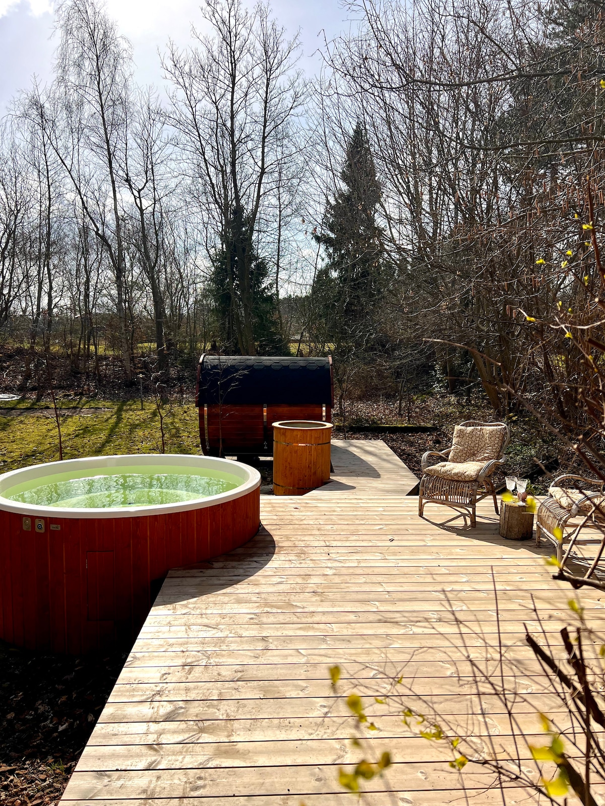 Velkommen til vores luksus feriehus i nordisk stil på 181 m² med plads til 10 gæster. Vi hedder Anders og Stine. Udendørs byder huset på en stor terrasse med privat vildmarksbad, sauna og udebruser. Indendørs findes biograf, billiard, bordtennis og bordfodbold - perfekt til både afslapning og sjov. Herudover 5 rummelige soveværelser samt et fuldt udstyret køkken. Naturoplevelser i topklasse med 300m. til skoven og 2 km til Danmarks bedste badestrand. Vi glæder os til at byde jer velkommen.