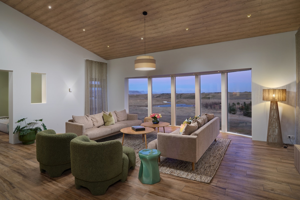 Escape to tranquility in this modern 2-bedroom home nestled in the breathtaking landscape of South Iceland. This brand-new space offers a blend of minimalist elegance and cozy warmth. Wake up to panoramic views of the iconic Dyrhólaey peninsula through floor-to-ceiling windows, and unwind in a living space bathed in natural light. Whether you’re enjoying a quiet morning coffee on the terrace, or relaxing in the lounge, every moment here connects you to the surrounding nature.