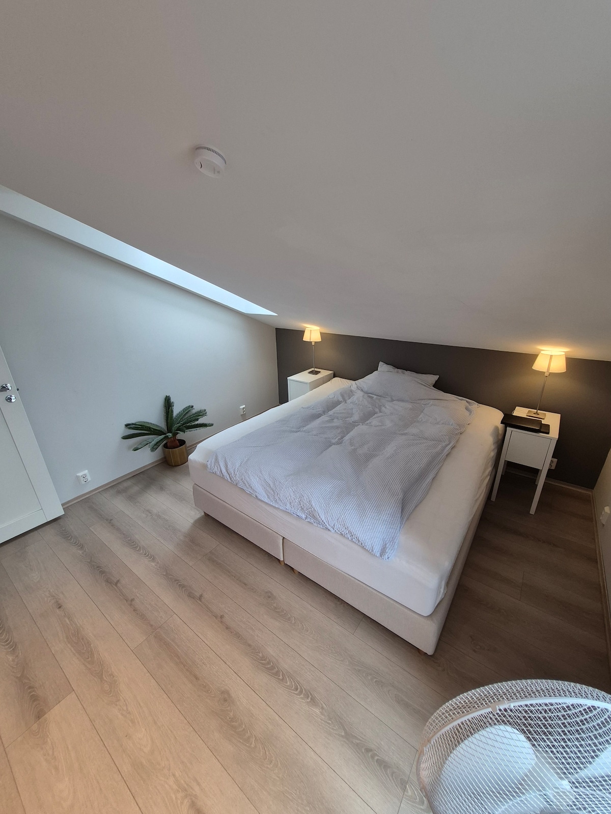 Senk skuldrene og bytt ut lyden av trafikkstøy med klukkende høner og sauebrek. Romslig loftsleilighet over garasjebygg med et soverom innredet med dobbeltseng og en hems med tre madrasser. Kjøkken (oppusset 2024) med kopper og kar, kaffetrakter. Bad med dusj, vaskemaskin og en terasse der du kan nyte morgenkaffen med underholdning fra dyrene. Sosiale og barnevennlige sauer, katter og høner som alle gjerne tar imot litt kos. Gangavstand til butikk, badeplass, busstopp og et flott turområde!