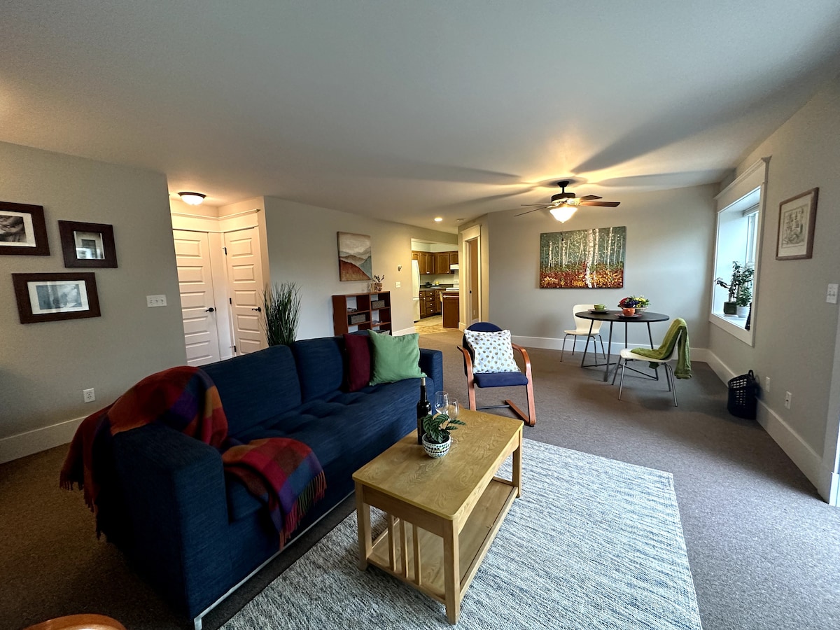 Spacious 1 bd apt w/impressive views of Padilla Bay & unforgettable sunsets, located at the end of a long driveway w/a private covered entrance. Large bdrm w/king size bed & walk-in closet. Fully covered deck w/gas firepit & comfy sectional. Streaming TV + reliable WIFI. This is the place to unwind & relax after a day of work or play. Pick up local ingredients at nearby markets to craft a meal in the fully stocked kitchen or discover local fare at nearby restaurants & bakeries. Onsite W/D.
