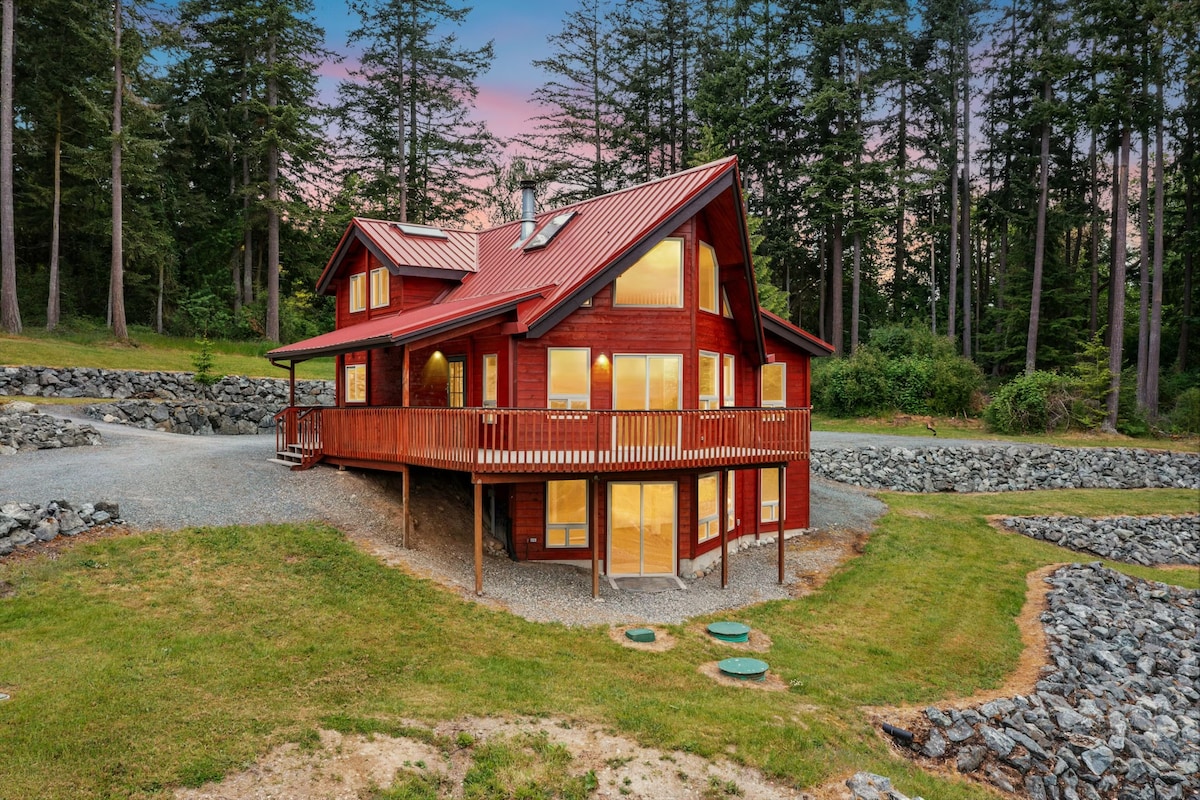 Escape to a pet-friendly paradise on Guemes Island! This 2-bed, 1-bath open floor haven sprawls across 2.5 lush acres. Imagine: industrial-grade steel meets polished concrete, inviting nature inside through expansive windows. A glass reading nook, a balcony for forest views, and a woodfire stove providing cozy comfort. Embrace the outdoors inside and revel in the flood of natural light. This is your private retreat—full access to a nature-infused getaway! We are pet-friendly w/no pet fees