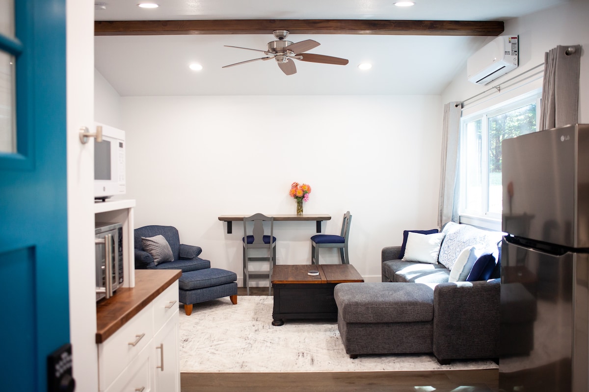 The Granary is a recently converted 110 year old grain shed (remodeled Summer 2020). It features a full kitchen, vaulted ceilings, bedroom loft and beautiful .75 bath. Located on the West side of Mount Vernon, it is minutes from I-5, yet situated on a 40-acres of farmland, next to an original barn and behind the main farmhouse. Good WiFi for work, ramp access and a ground-level hide-a-bed. Large West-facing deck and hot tub to enjoy sunsets.