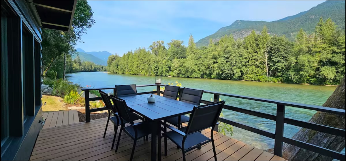 Nestled in the beautiful North Cascades, Riverside Retreat brings the tranquility of PNW. Unwind with a perfectly brewed coffee from the coffee bar, relax in the hot tub, all while admiring the rushing river and the mountain views from the property. This riverfront property near the North Cascade National Park is truly an experience, awaiting your arrival Fully equipped kitchen and bathroom, high speed wifi, indoor fireplace, outdoor firepit, game room, BBQ grill