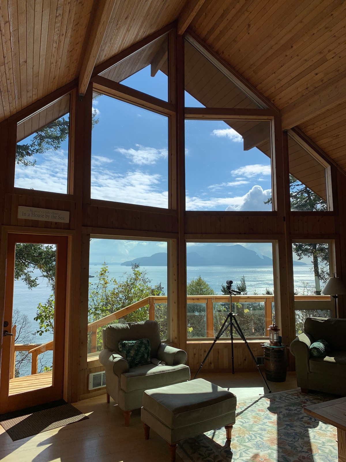 Escape to a pet-friendly paradise on Guemes Island! This 2-bed, 1-bath open floor haven sprawls across 2.5 lush acres. Imagine: industrial-grade steel meets polished concrete, inviting nature inside through expansive windows. A glass reading nook, a balcony for forest views, and a woodfire stove providing cozy comfort. Embrace the outdoors inside and revel in the flood of natural light. This is your private retreat—full access to a nature-infused getaway! We are pet-friendly w/no pet fees