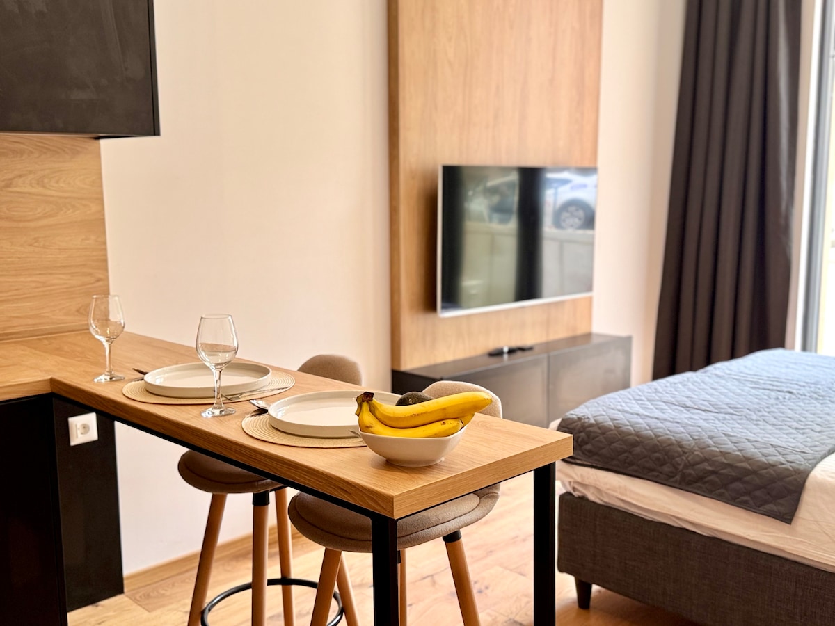Relax with the whole family in this brand new one-room apartment with an incredible view from the terrace. The most beautiful position in the bay with a view of the most beautiful part of the bay. The apartment is located 4 kilometers from the old town.
