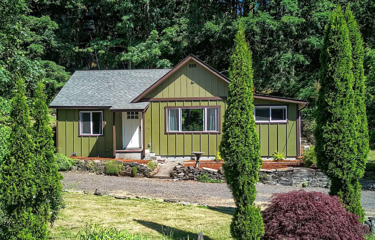 River’s Rest..only 45 minutes from PDX, and Multnomah Falls, gateway to the Columbia Gorge. Hiking just minutes away. Huge fire-pit and covered porch over-looking the river. Great if you get to work from home. You have your own Wi-Fi land-line telephone. Once your work day is over you can enjoy what the Columbia Gorge has to offer. EV charging is available. (No extension cords though) $8.00 a day. ( Sorry no parties or events allowed