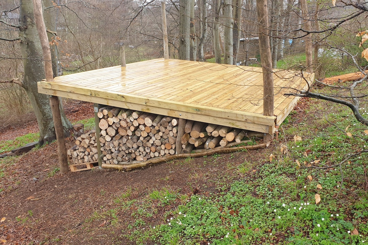 Lille anneks som ligger i haven. Der er et badeværelse, en hems og stue med et lille te-køkken. Køkkenet indeholder kogeplader og kombiovn, samt kaffemaskine. Hemsen har en skøn udsigt, særlig om aftenen hvor der kan kigges på smukke solnedgange og stjerner. Der er 2 madrasser på hemsen, og mulighed for en tredje. Der er en sovesofa i stuen hvor der kan sove to personer. Der er mulighed for at låne luftmadras og rejseseng, skriv blot. OBS der er IKKE wifi dækning.