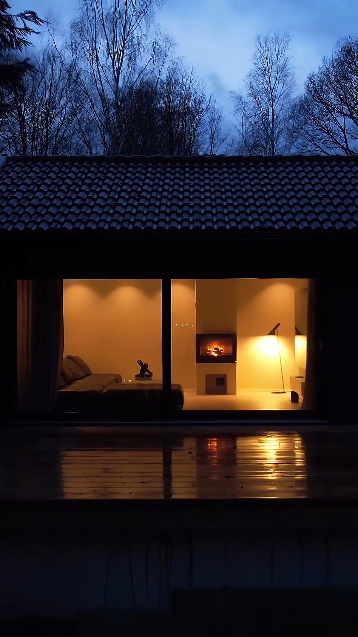 Take it easy at this unique and tranquil getaway. Featuring a fire pit, jacuzzi and sauna, brings use of the 40m2 patio and allows for you to enjoy the outdoor atmosphere! Surrounded by tall trees this Modern yet Simple Cabin was thoughtfully designed to bring you a luxurious getaway in Mother Nature with a forest landscape right at your fingertips. The perfect amount of seclusion without being too far removed. Enjoy all the amenities you need to relax and recuperate.