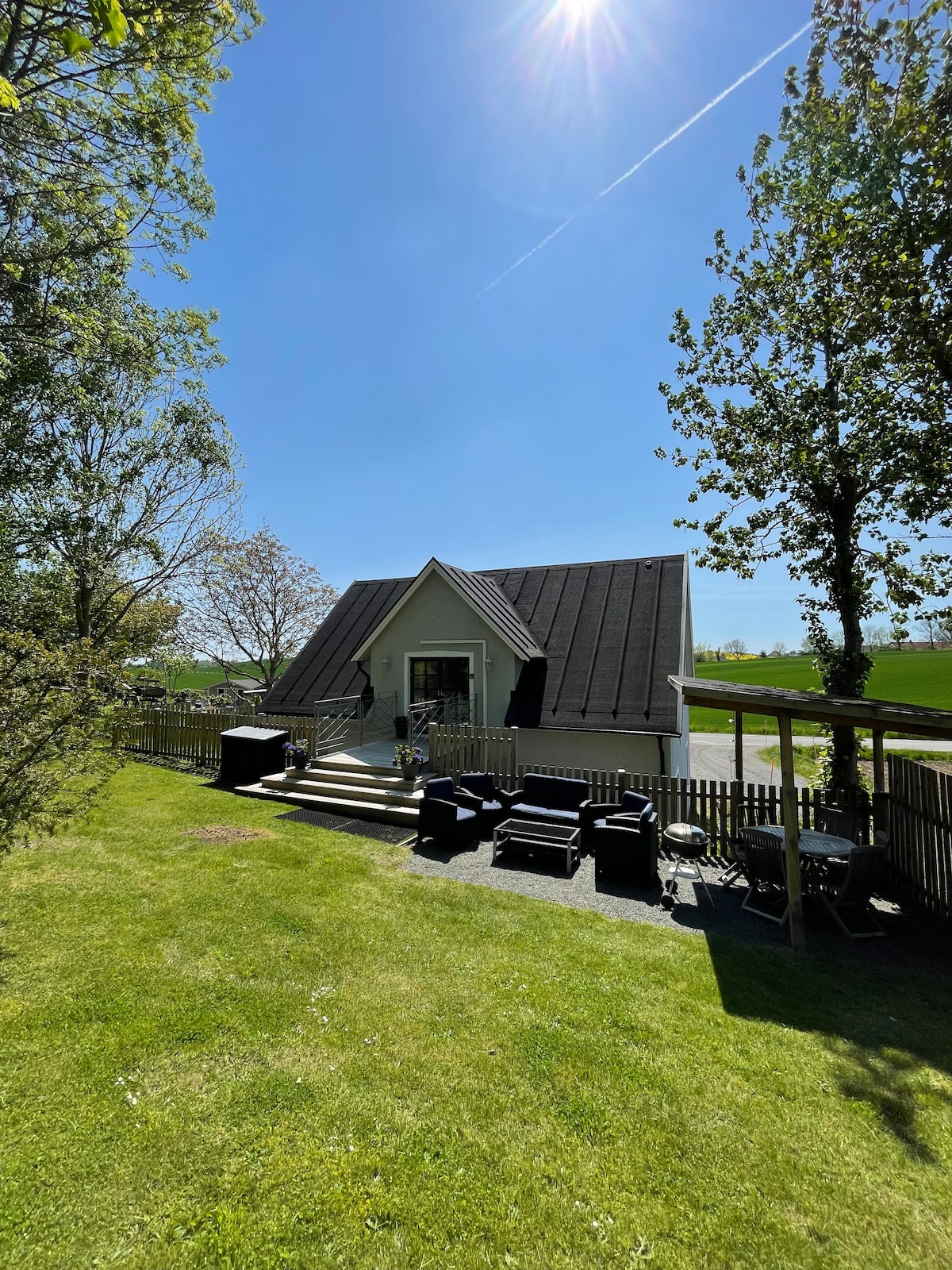 Designed & furnished with a touch of luxury ideal for couples and family holidays set in beautiful countryside with Ystad Centre & fabulous sandy beaches just 2/3k away plus all southern Sweden within easy reach You have Remote Control for Air Conditioning & Heating to ensure total comfort in summer or winter WIFI via Optical Fibre internet is reliable & fast. The garden has comfortable seating & dining for 6 plus barbecue Ystad by car 5min or cycle 10min 1k to an ICA supermarket 7am-10pm 7 days