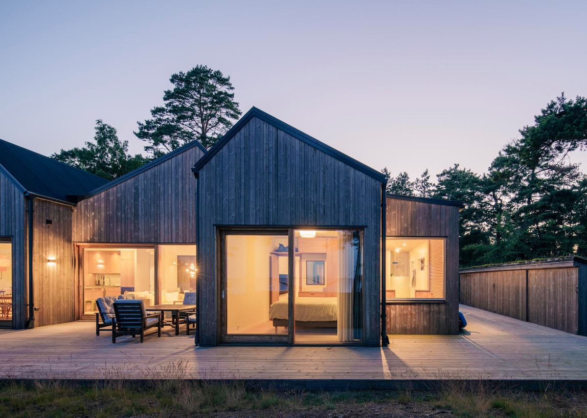 Huset hyrs ej ut 21/6 - 15/8. Bokning öppnar 9 månader innan. Villa med fantastiskt läge precis vid stranden & panoramautsikt ut mot havet. Naturtomt med stort trädäck och sitt-/matplatser. Kök, matplats & vardagsrum i öppen planlösning. Avskilt TV-rum (endast streaming). 3 sovrum med dubbelsängar. Loft med 4 sängar (OBS fara: brant trappa). 2 badrum varav ett med bastu & tvättmaskin. Privat parkering. Lakan, handduk & WiFi ingår. Ved ingår inte Pristillägg vid vistelse kortare än 3 nätter.