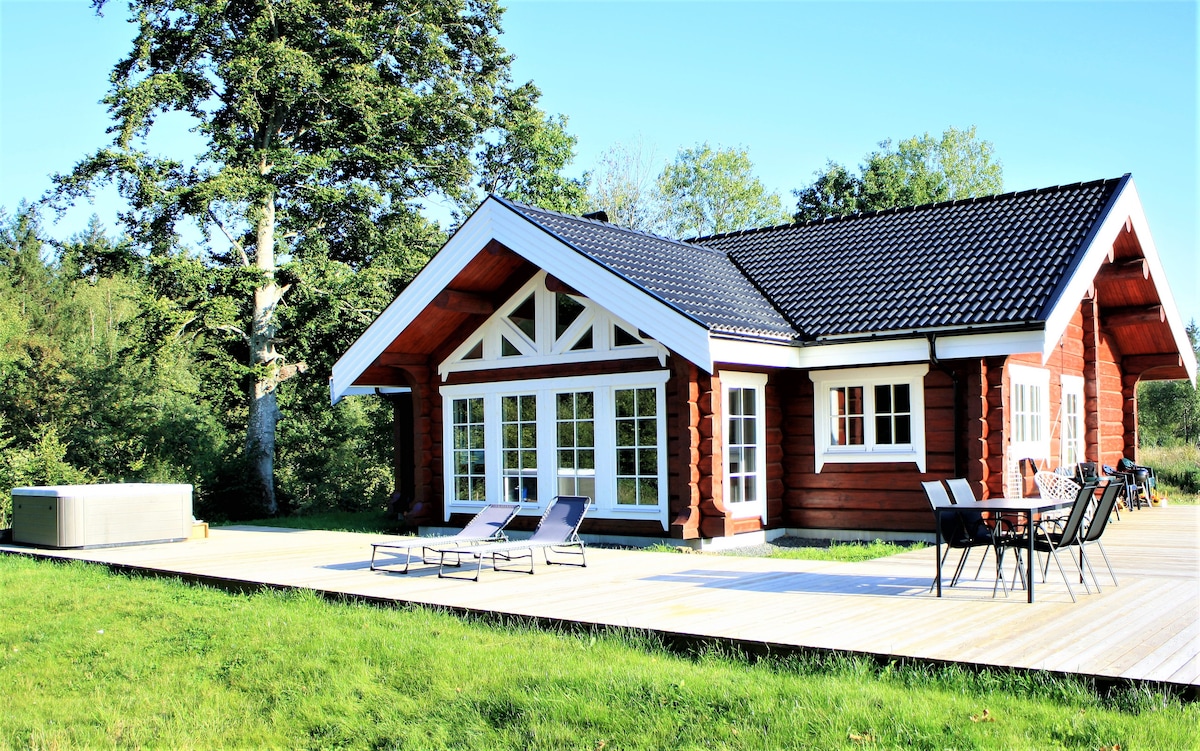 New built 2021 this log house is an fantastic exclusive living, private location, amazing views of lake, forest and fields. Plenty of activities . This place is made for the adventurous or for a relaxing getaway. Enjoy the included cold-mangled bedsheets and freshly washed towels. Wifi. Enjoy fireplace inside, spacious living room inside the house or relax at the great terrace and take a bath in the luxurious outdoor SPA. Perfect for trekking, biking, riding, fishing and golf. Rosenhult dot se