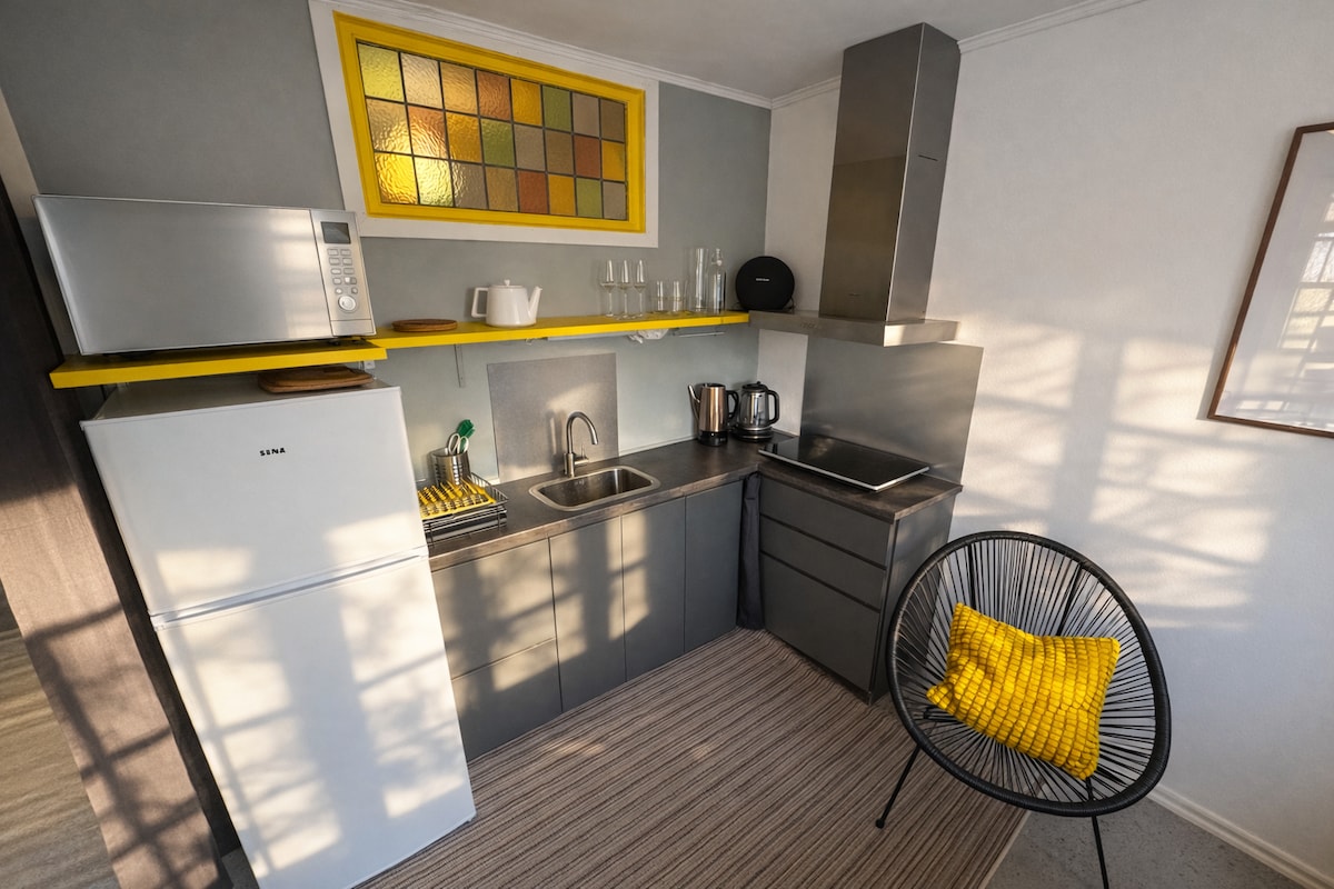 Welcome, My name is Frans, a couple of years ago I had a stroke so my speech isn’t a 100% but I understand Dutch, English and Swedish. The living room, bedroom and bathroom have been built inside a garage which is yours as well (there’s plenty of heating). There has been installed a small kitchen which has a stove,toaster,kettle,fridge,microwave and of course your basic utilities.(Theres a crockpot as well). If you need any other kitchen equipment just ask :)