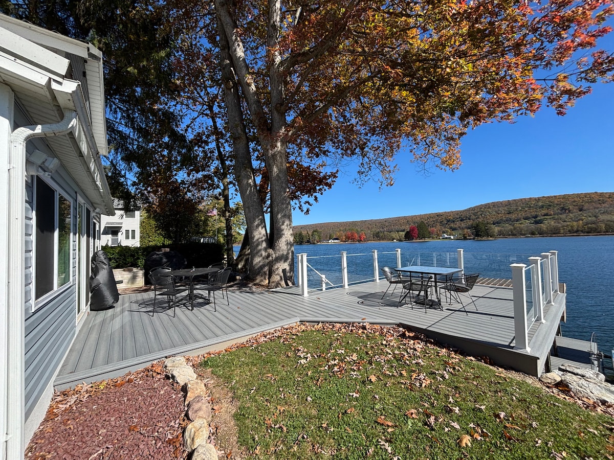 Welcome to Keuka lake in this beautiful home that boasts 3 master suites. The living room has a panoramic view of Keuka Lake. There is a deck off the top floor and a patio off the first floor to sit and enjoy the lake view as well. From the downstairs patio you are only a few steps to the beach. At the end of the dock the lake is only 3 feet deep so it’s excellent for swimming. Everything in this house is new and very clean. We are a mile from downtown Penn Yan.