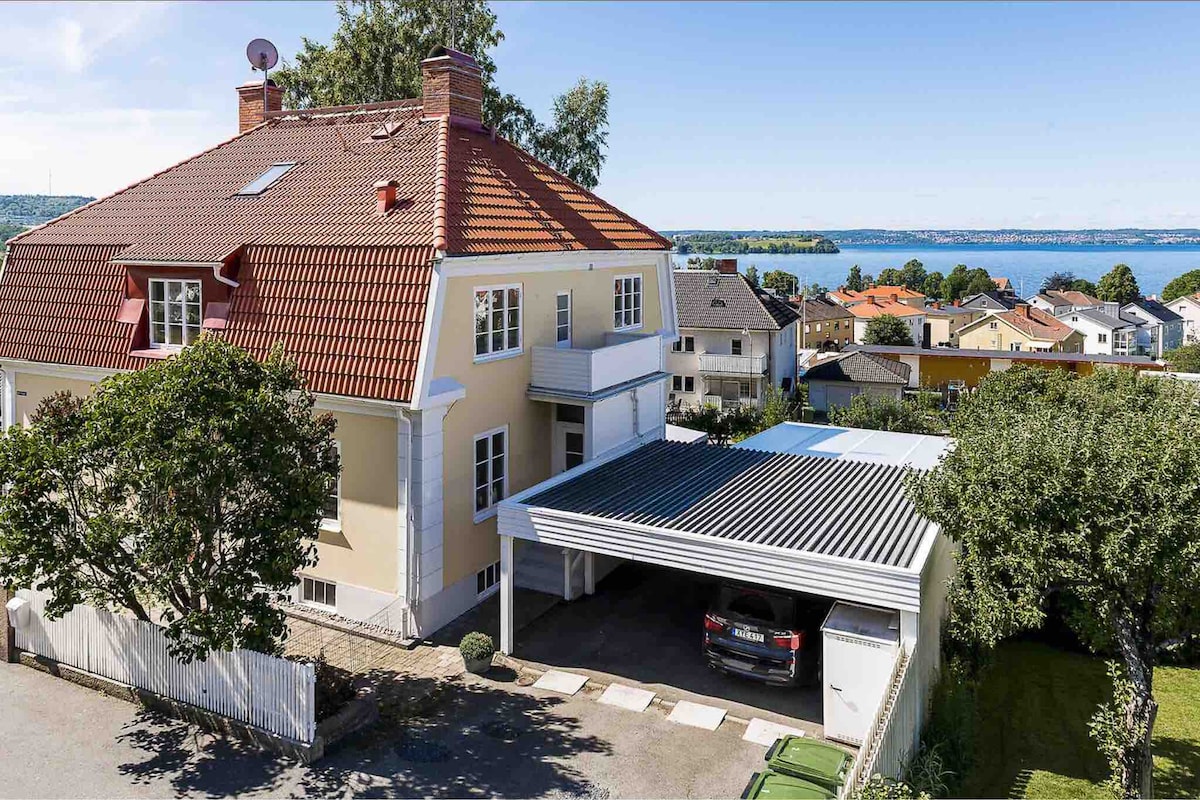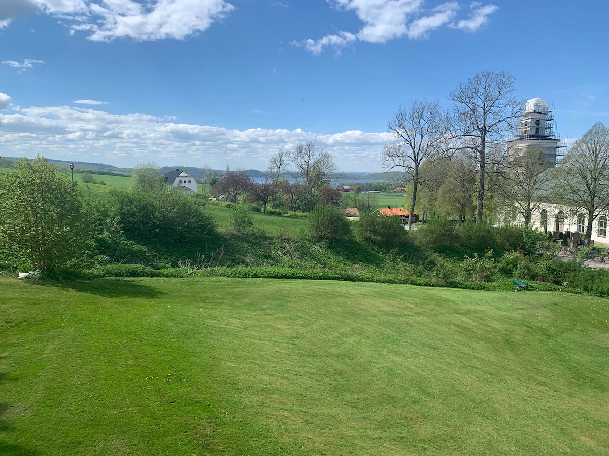 Nybyggd lägenhet i villa i Jönköping med vacker utsikt över Bårarps backar. Bekvämt boende i toppskick med egen ingång & självinchecknikg. Vi som bor i villan är en lugn barnfamilj. Sköna sängar, en 160 cm dubbel och en 80 cm. Kök med kyl, frysfack, ugn, mikro, utrustning. Fräscht badrum med dusch och tvättmaskin. Golvvärme & modern ventilation. Fläkt men ingen AC. Bra läge. Nås snabbt från E4, väg 40, Elmia & centrum. Gratis parkering på gatan. Stenkast från busslinje.