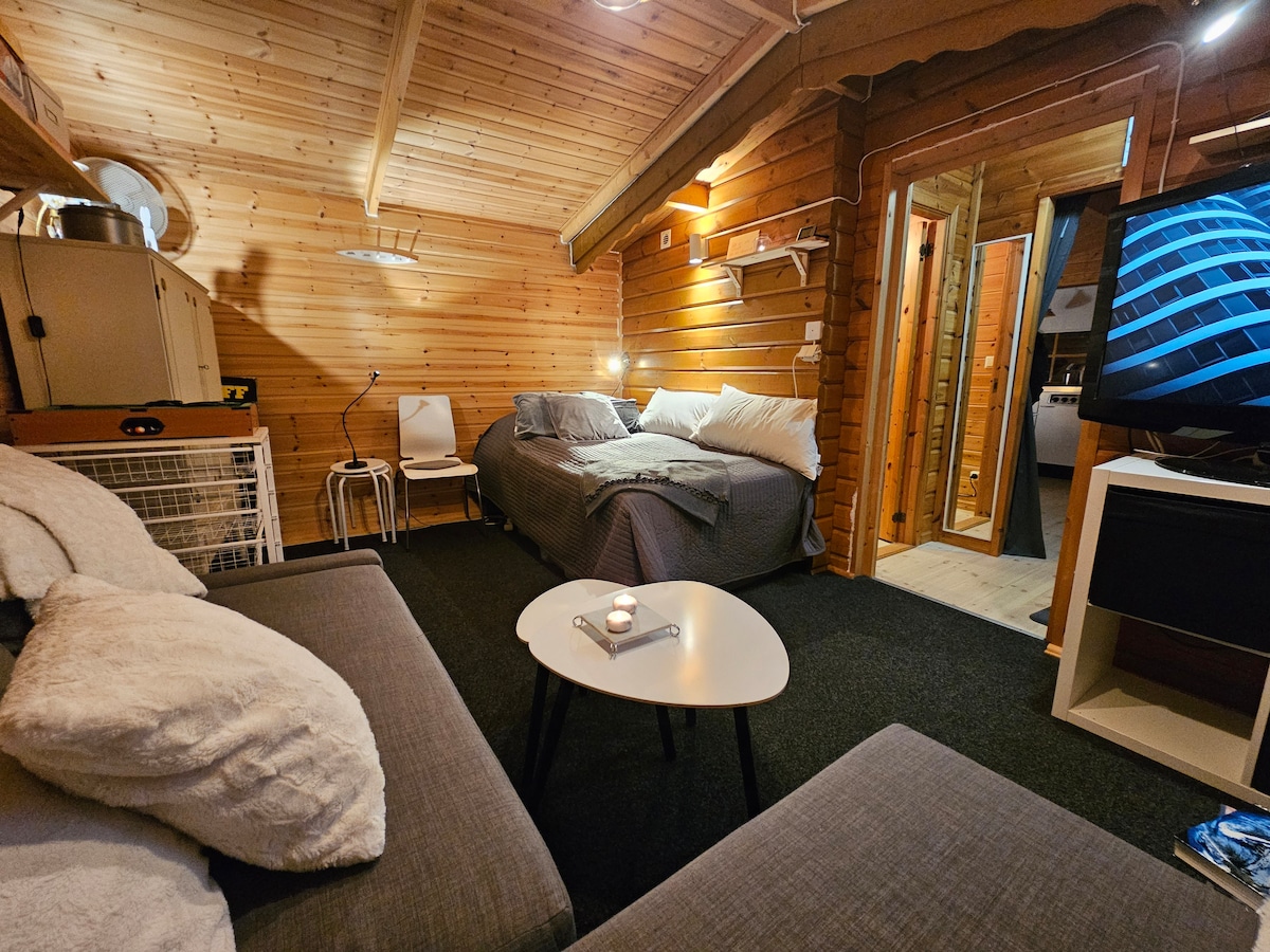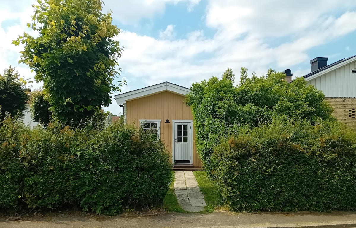 Rosenlundsstugan är en modern stuga på Rosenlundsområdet i Jönköping, endast 3 km från centrum. Stugan ligger vackert belägen nära Vätterns södra strand. Närhet även till Elmia, Rosenlundsbadet och Husqvarna Garden. Du hyr en helt fristående stuga med allrum med köksbänk och pentry, WC med dusch, ett sovrum med dubbelsäng samt ett sovloft med två enkelsängar. Inför din ankomst bäddas sängarna upp utefter antalet gäster. Välkommen till Rosenlundsstugan - modernt stugboende i familjär miljö!