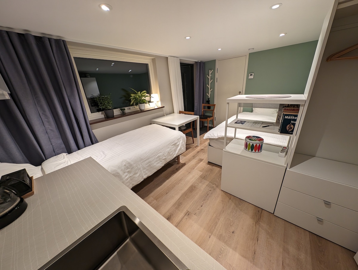 Nyrenoverad och genomgående fräsch lägenhet med hög standard i ett lugnt och trevligt område. Lägenheten har två separata sovrum med 2st delbara 90 sängar. Varje sovrum samt vardagsrummet har varsin TV med brett kanalutbud samt filmstreamingtjänst. Köket är utrustat med kylskåp, micro, induktionsspis, ugn, diskmaskin samt kaffemaskin. Kombinerad tvätt/torkmaskin i badrum Gratis parkering med möjlighet att köpa till laddning av elbil. Närhet till flera busshållplatser.