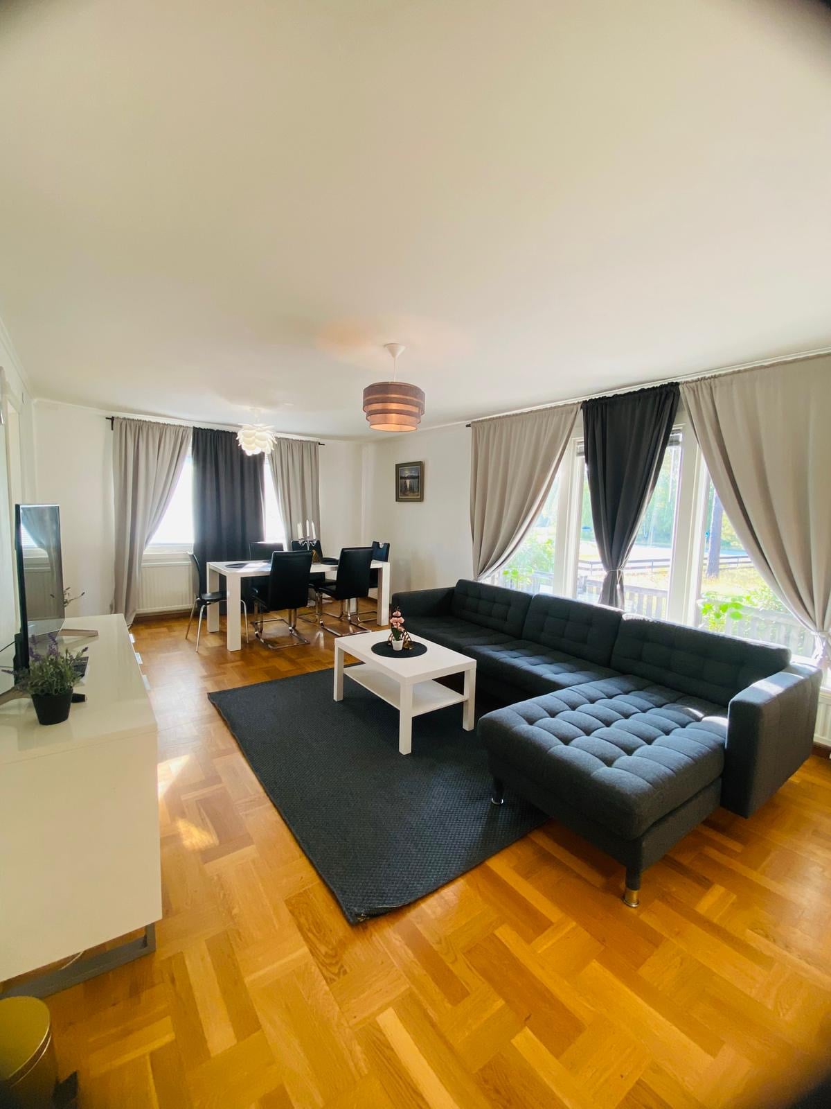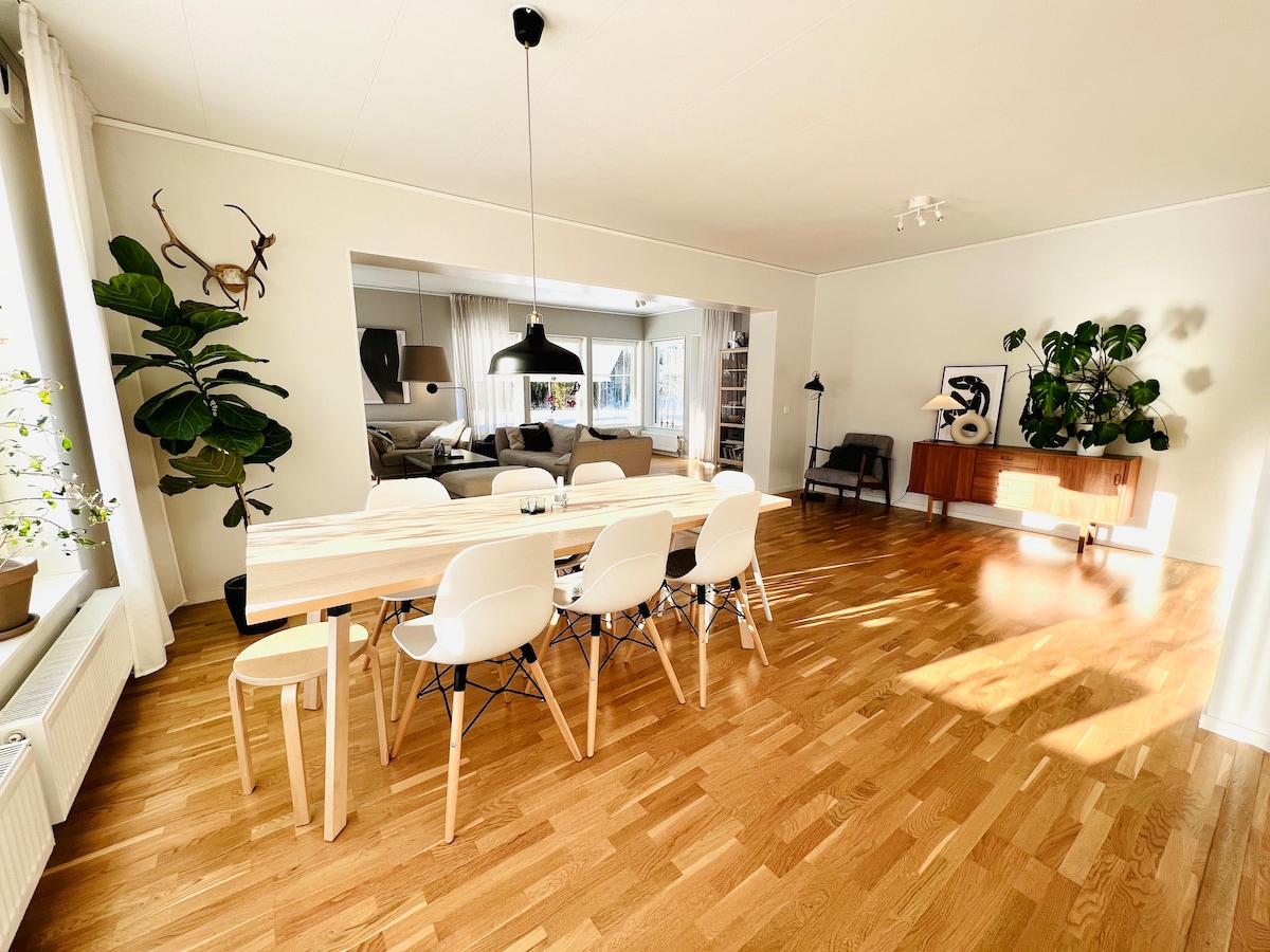 En helrenoverad villa (2022) med hög standard, fina och tysta rum. Passar familjer/kompisgäng , som uppskattar fint boende i en lugn o tyst omgivning. 10 minuter till city. Bra bussförbindelser. Golvvärme i hela huset och köket har dubbla vitvaror av allt. Fullutrustat kök o fullt möblerat. Hotellstandard på sänglinnen & handdukar. Kommer ni med flyg, buss eller tåg? Transfer kan ordnas. Stor stenlagd uteplats med gasolgrill & matgrupp/lounge , paviljong. We speak Swedish and English