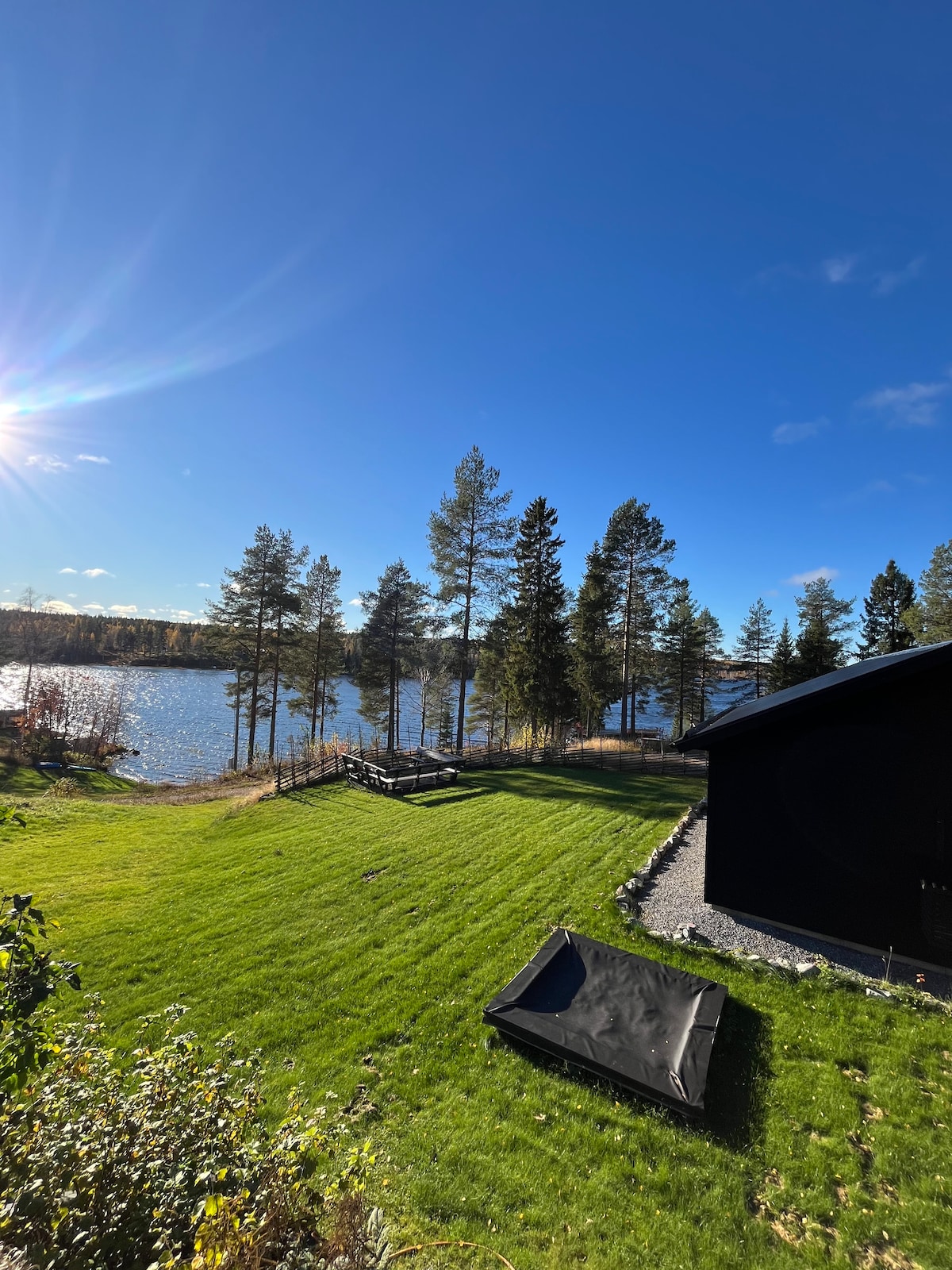 12 meter till vattnet med barnvänlig sandbotten som inbjuder till bad i den varma sjön. Bra fiske från brygga eller den båt som ingår. närhet till skog med fina markerade motionsslingor. gräsmatta att sola och leka på. Allrum med kök, matplats och tv del. 2 sovrum och ny renoverat badrum med dusch och toalett. luftvärmepump som värmer eller kyler. Egen uteplats med eldfat och kolgrill. Det tar 20 minuter till Skellefteå stad med bil med hjälp av E4:an.