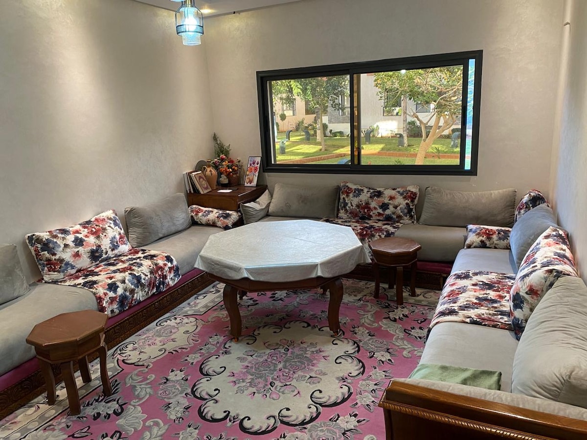 Bienvenue à Skhirat ! Notre appartement, situé dans une résidence calme et sécurisée au 1er étage, offre un confort exceptionnel toute l'année. À seulement 5 minutes de la plage et à proximité de 9 plages différentes. ☞ Accueil flexible pour les visiteurs ☞ Parking gratuit en face de l'immeuble ☞ Résidence sécurisée avec gardiennage jour et nuit ☞ Proche de l'autoroute, facilitant l'accès aux grandes villes de Rabat et Casablanca ☞ Internet haute vitesse ☞ Smart TV pour vos divertissements