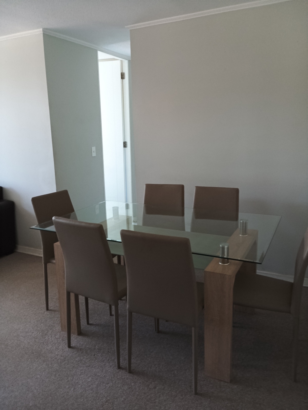 Cómodo departamento con ubicación a pasos de la ruta internacional, a cinco minutos del centro de la ciudad ( en vehículo) , cercano a clínica y a supermercados. Posee 2 dormitorios, 1 baño, cocina amoblada y equipada con todo lo necesario , lavadora, aire acondicionado y WiFi. Departamento ubicado en primer piso, estacionamiento gratuito dentro del condominio. Acceso controlado al condominio.