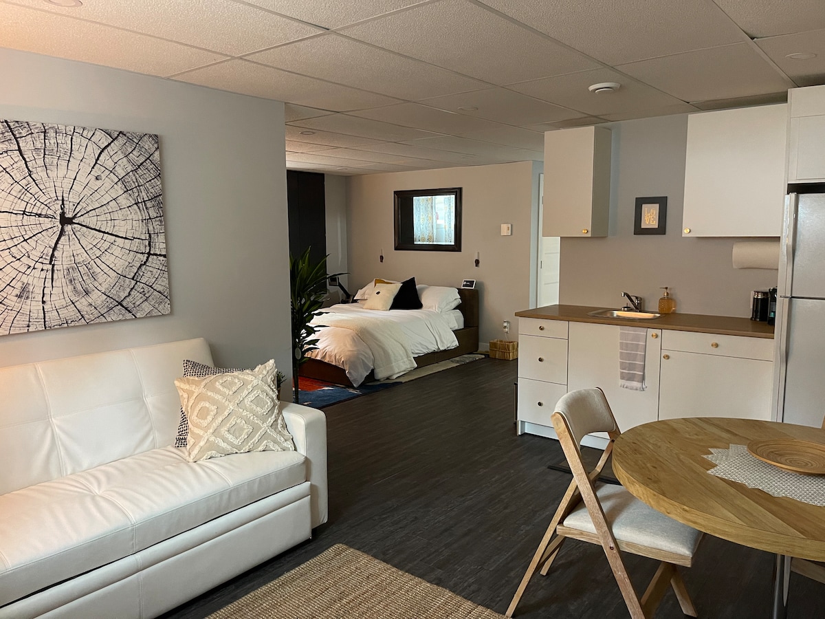 Profitez de l'atmosphère stylisé de ce logement au centre de tout à Granby. Il est complètement rénové et idéal pour un couple ou une personne seule voulant visiter la région. La propreté, les accessoires, le stationnement gratuit, l'arrivée autonome et le cabanon barré vous plairons. Plusieurs excellents restaurants sont marchables. Le Zoo, le Parc de la Yamaska, Bromont, la route des vins, la piste cyclable et autres, ne sont qu'à quelques minutes de voiture. La propriétaire occupe les lieux.