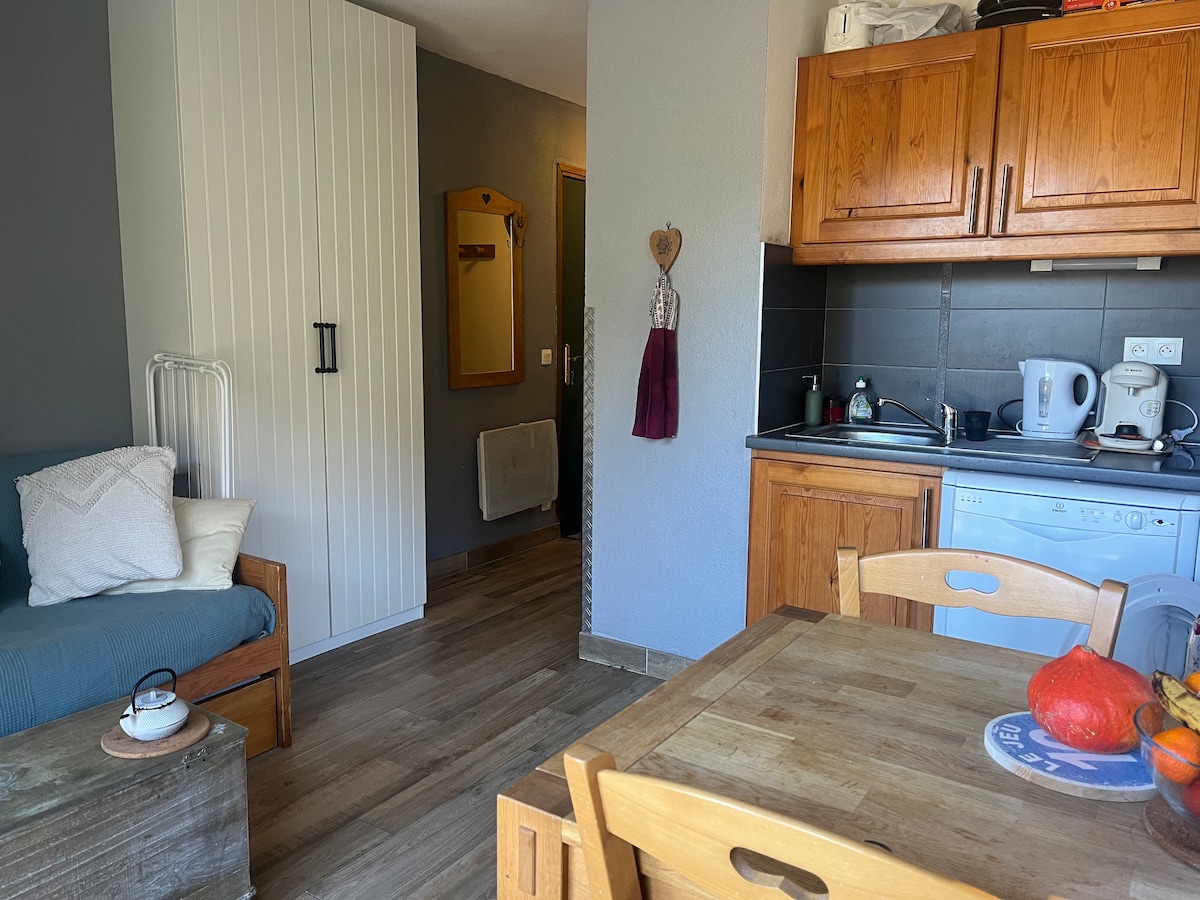 Appartement cosy 4 personnes, centre station, proche tous commerces et restaurants, à 100m des télécabines, parfait pour construire de beaux souvenirs LE LOGEMENT: Salle de bain: baignoire,sèche serviettes Cuisine équipée: Réfrigérateur/congel, cuisinière/four,lave vaisselle,micro-ondes, cafetiere+Senseo,bouilloire,grille pain Salon: Table,Clic clac,Ecran suspendu,jeux de société. Petite chambre: BZ,rangements Casier ski,balcon Linge de lit et maison non fournis 30% sur location matériel ski