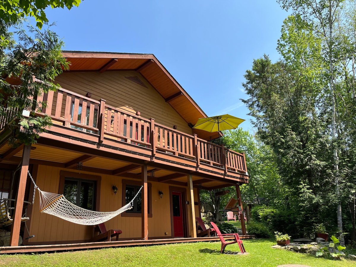 Spectacular view, peaceful haven, perfect place to relax with your family and have a good time in the Mont Blanc mountain side in the Laurentian. 20 minutes from Mont Tremblant. You have access to a supervised beach 5 minutes from the cottage by car. Need a good car with good tires in winter. It is not advisable to have 4-season tires in winter. Access to the slopes of Mont Blanc SKI-IN/CAR-OUT style located at 10 minutes walk. CITQ 139580 La Reine du Mont-Blanc