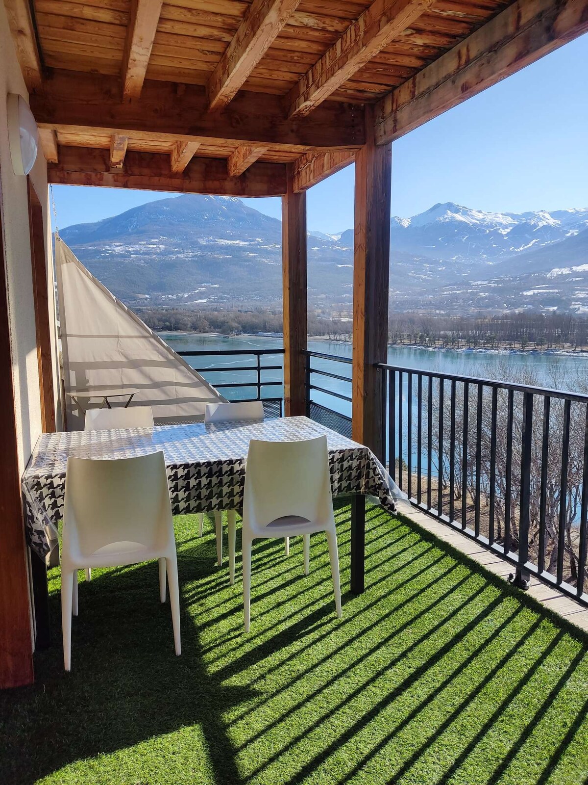 Gîte Les Vignes Du Lac Jolie maison arborée d'arbres fruitiers sur un terrain de 1600m², votre appartement est situé en bas à gauche face à Savines dans un quartier calme qui bénéficie d'une splendide vue sur le lac à l'entrée du parc national des écrins. L'appartement dispose d'un séjour avec coin détente (TV, canapé-lit 1 place en 80), d'une cuisine toute équipée, d'une salle d'eau avec lave-linge et douche, 2 chambres (1 lit 160, 2 lits 1 personne) et d'une terrasse.
