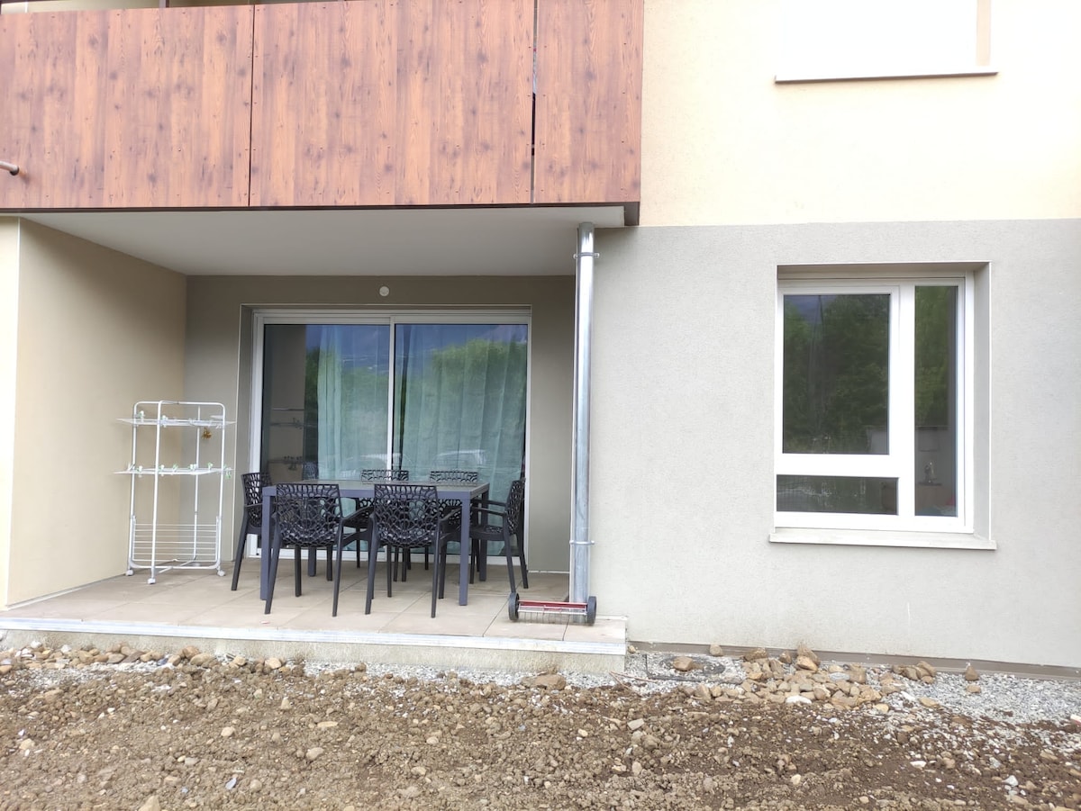 T2 plan d'eau, jardinet avec vue montagne et lac